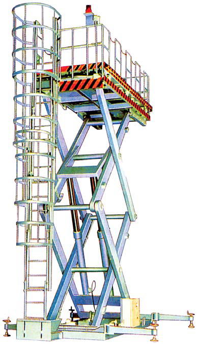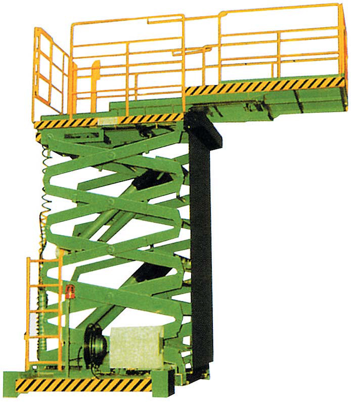 - 시저 리프트형 구조의 고소작업대로서 부품 상승·하강이 용이하며 여러명이 동시 작업 가능합니다.